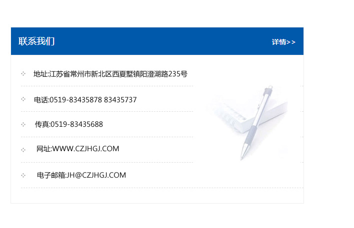 地址:常州市新北區友邦商務大廈1幢16、17層  電話:0519-85101652  傳真:0519-85112595  郵編:213022  網址:www_cz-jiayue_cn.xiangpengyuan.com  郵箱:xiajifengaa@163.com